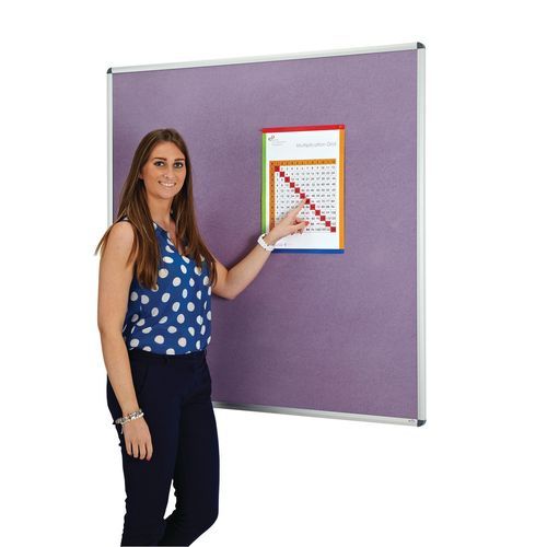 A high quality noticeboard with a heavy duty frame made using a Sundeala Eco 100% recycled material Fire rated EN13501 Class B.
