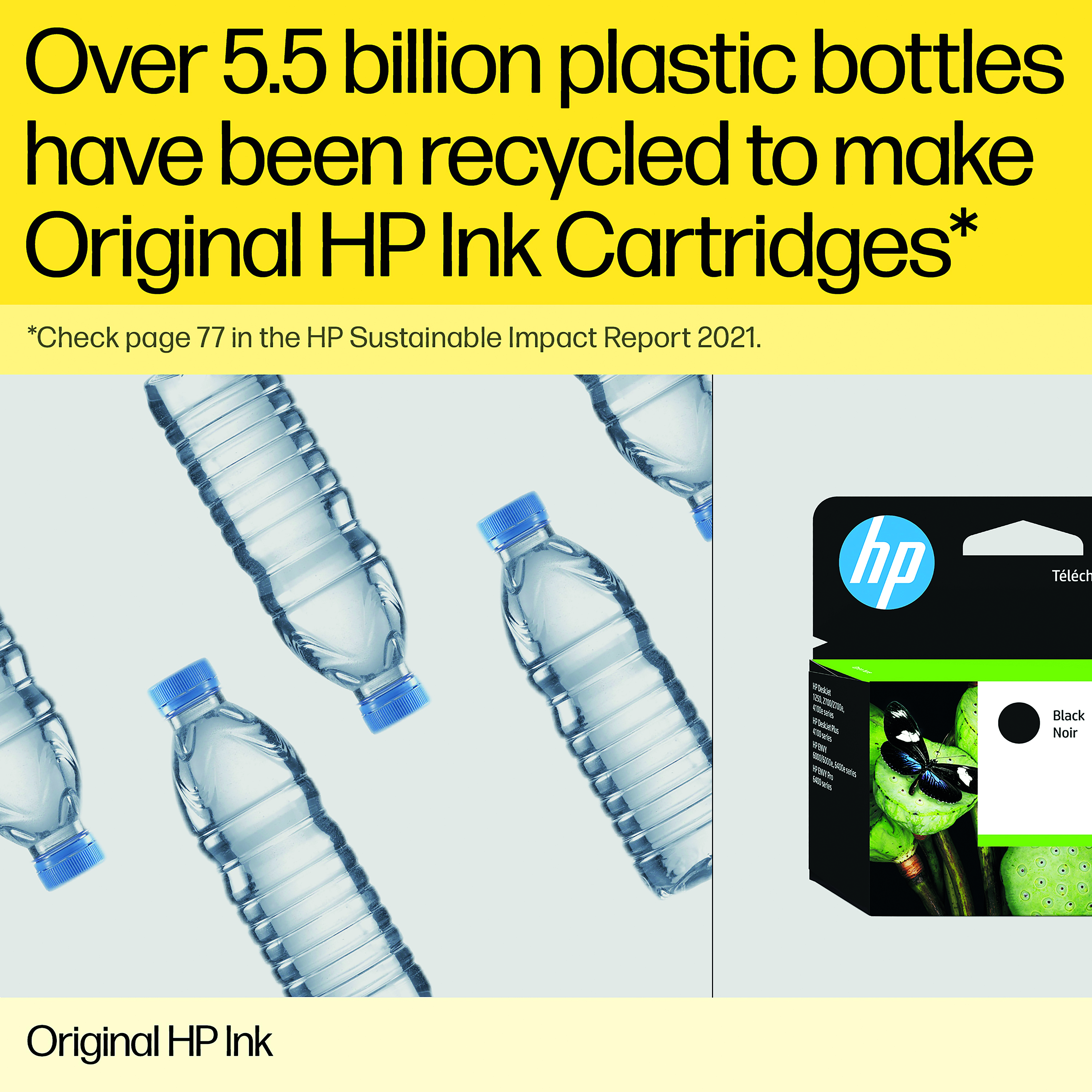 - 80% of Original HP ink cartridges contain recycled HP cartridges, bottles, or hangers