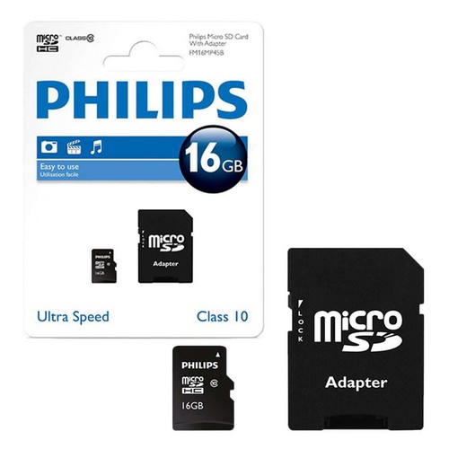 Philips Micro SDHC Class 10 Memory Card 16GB & Adaptor